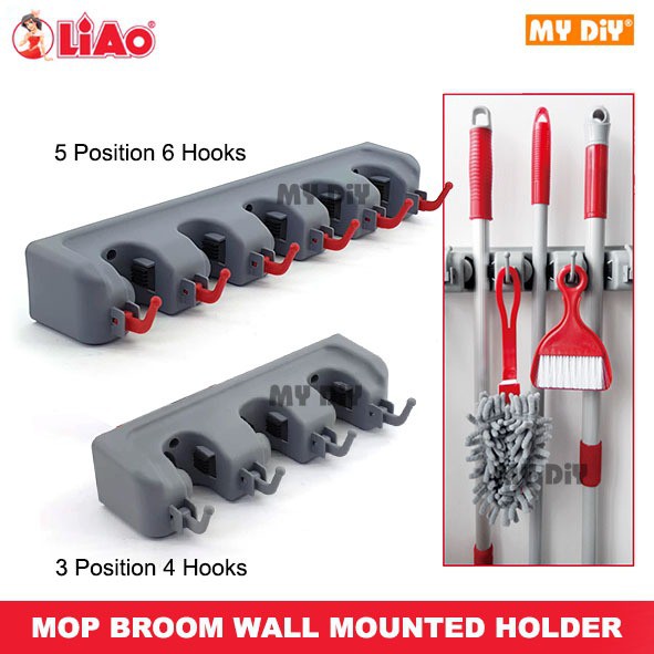 Plastic 6 slot mop and broom holder (65) model# mb01905. Best wall mount broom holder of 2021. Thebrownyak 5 out of 5 stars (2) $ 9.99. Built to last, easy to install. Add to favorites mr.siga mop and broom holder 4 slots retractable hooks sturdy aluminum alloy.