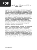 Pero un mundo feliz es un libro acerca del futuro, y, aparte sus cualidades aldous huxley un mundo feliz 6 artísticas o filosóficas, un libro sobre el futuro puede interesarnos solamente si sus profecías parecen destinadas, verosímilmente, a realizarse.